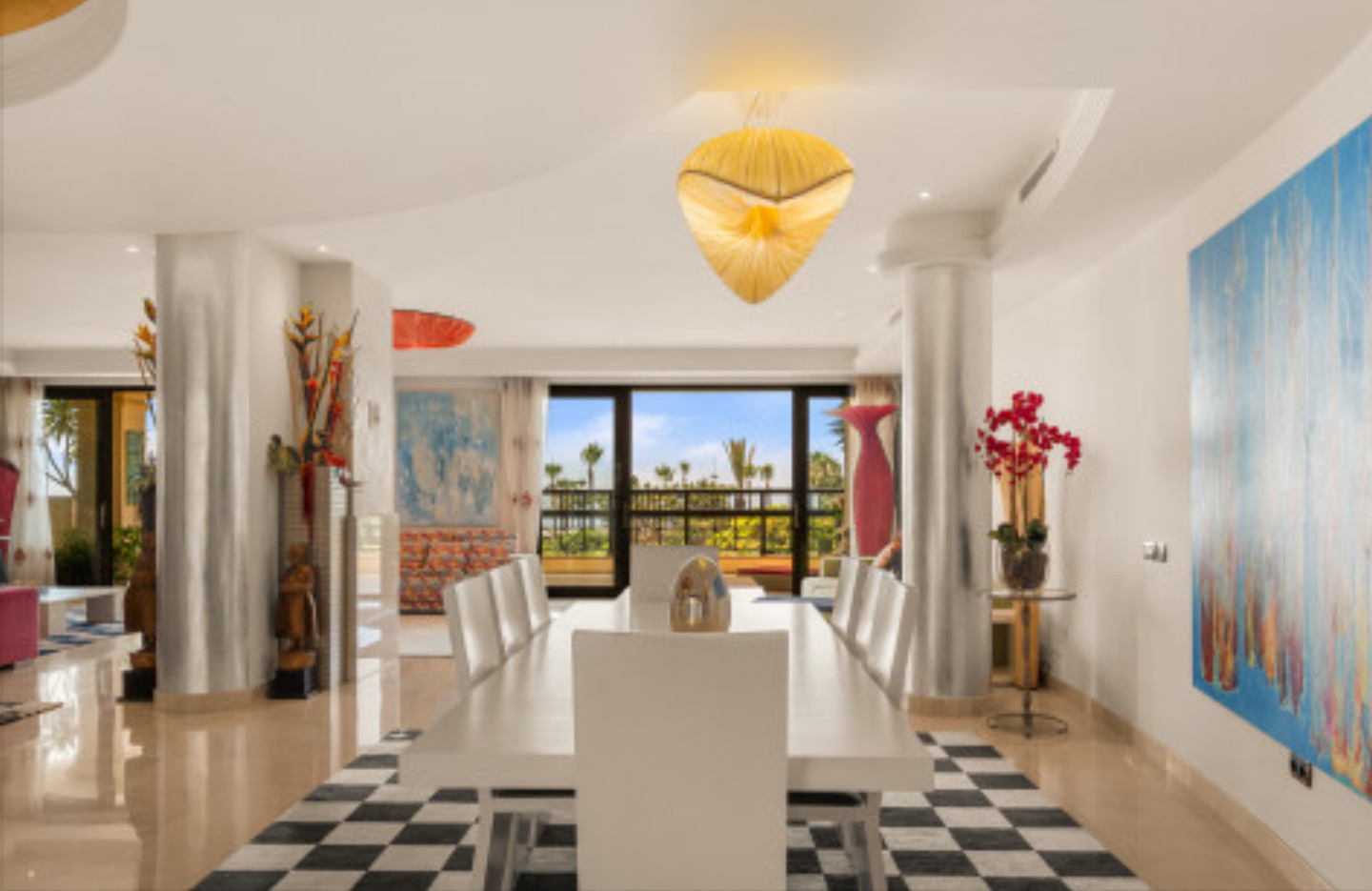 Experience the pinnacle of coastal living in this stunning apartment located directly on the beachfront. Situated within one of Marbella’s most exclusive gated communities and just a short stroll from the world-famous Puerto Banús, this residence offers the perfect blend of privacy, security, and luxury.