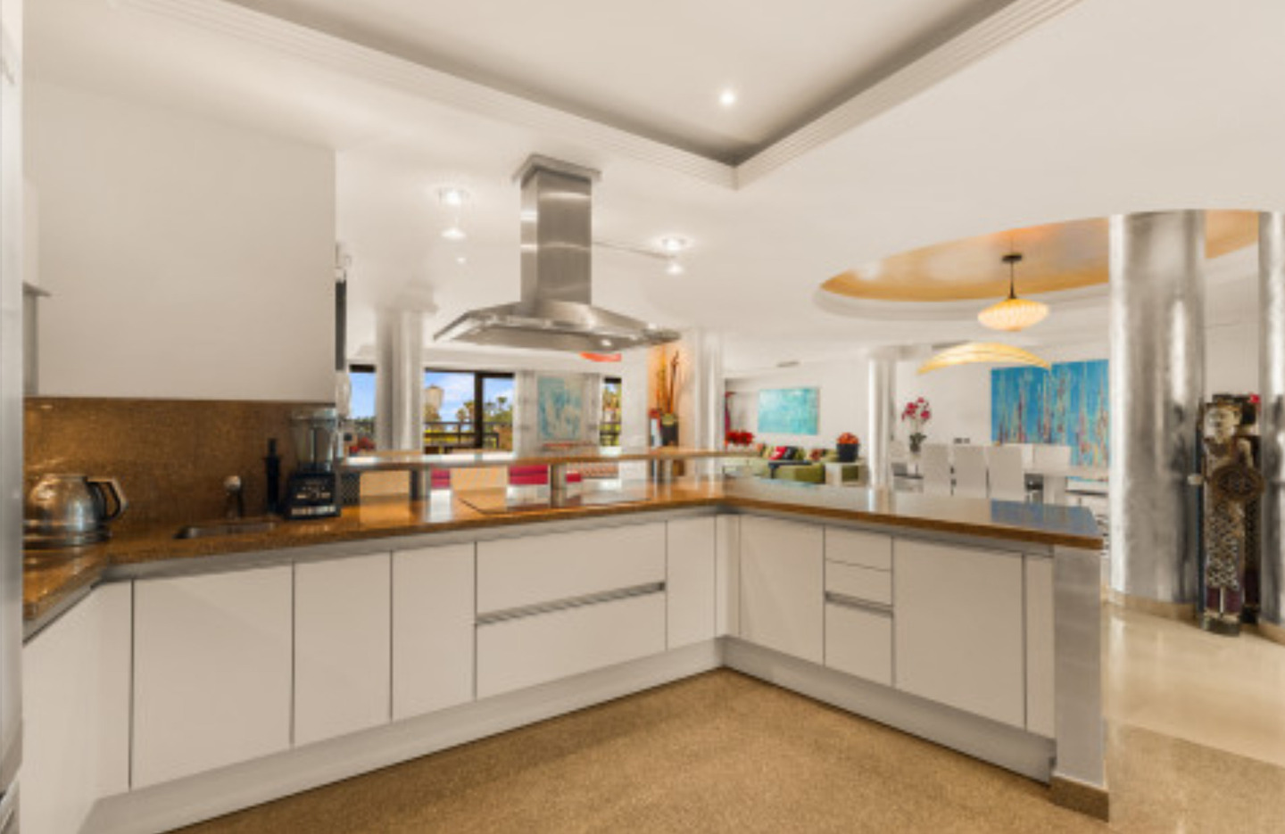 Spacious Interiors & Private Terrace The bright, open-plan living area flows naturally onto an expansive private terrace, perfect for enjoying panoramic views of the sea and lush tropical gardens. The property features a high-end kitchen, a separate laundry room, and three generous en-suite bedrooms, with the master suite offering direct terrace access.