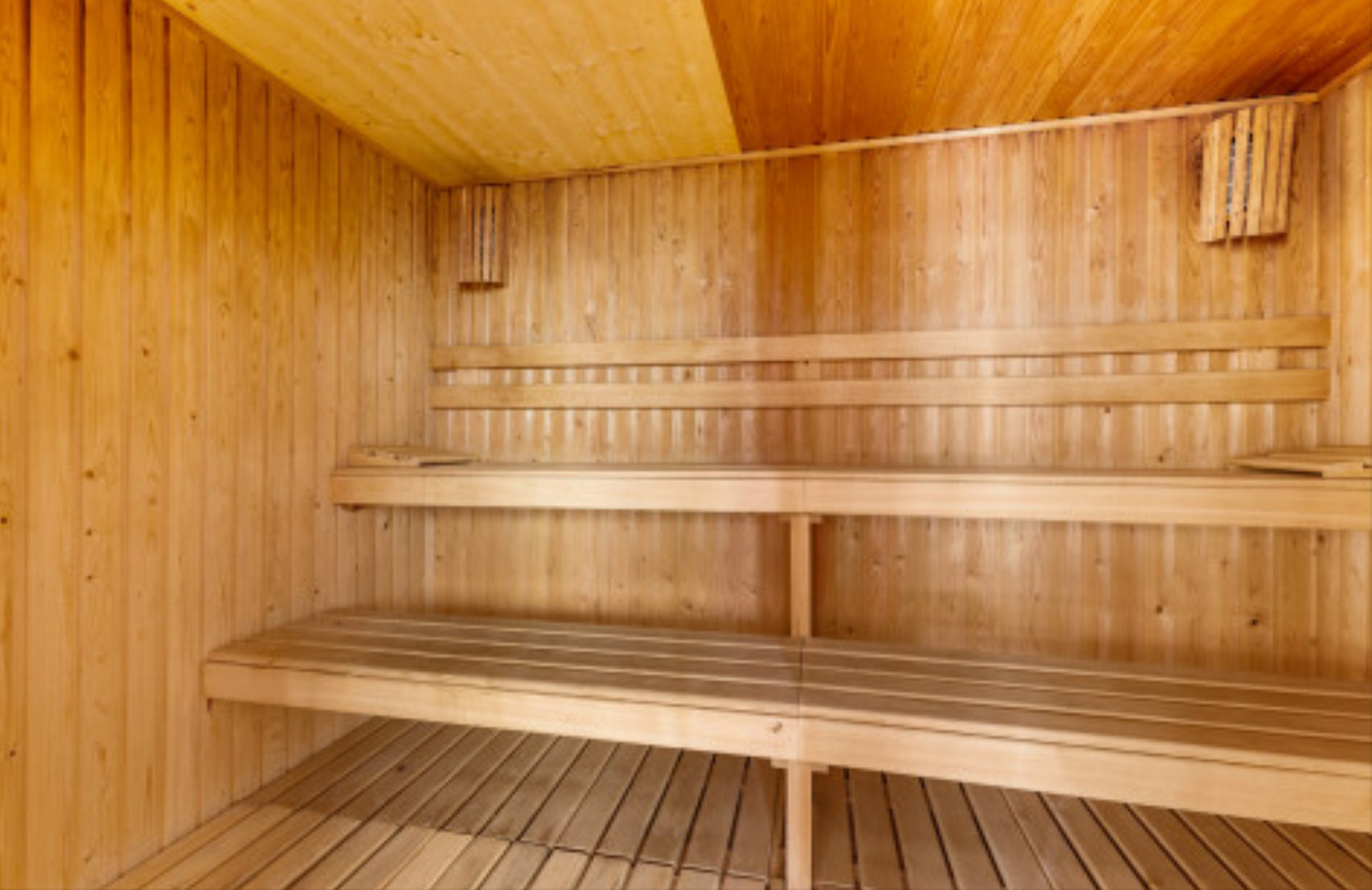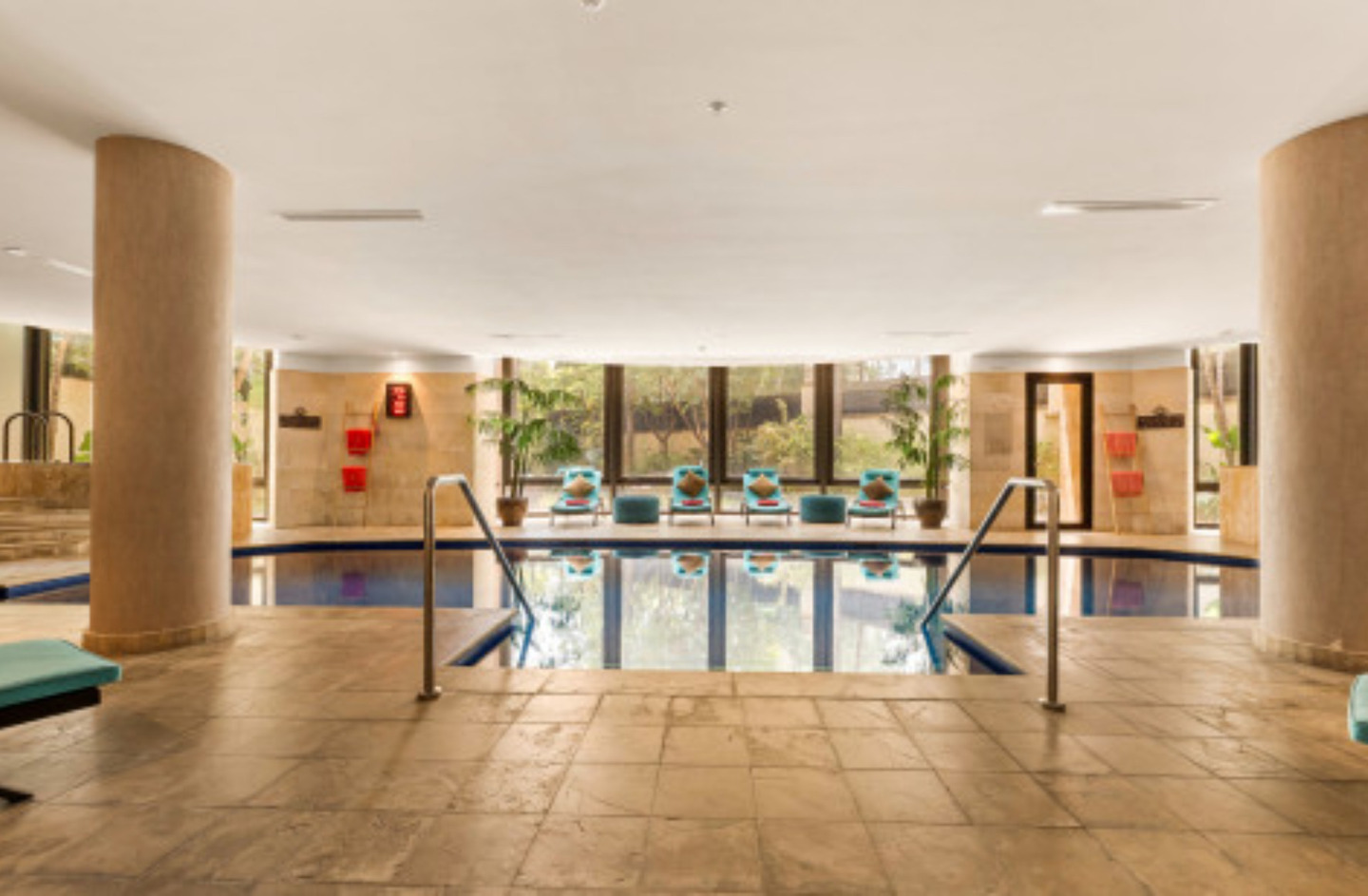 Full Wellness Center featuring an indoor heated pool, gym, and sauna.
